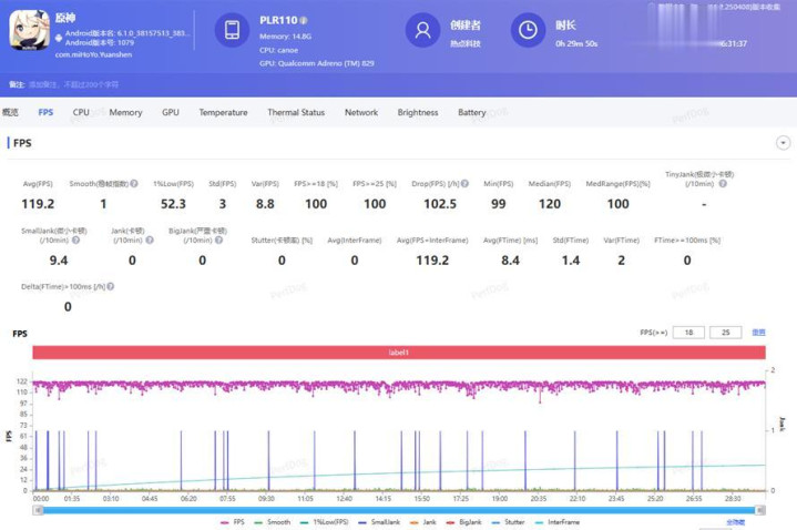 那除了165的高帧游戏体验,一加Ace 6T也是支持超帧的游戏体验,比如在《原神》开启游戏可设的最高画质+60帧模式之后,在手机游戏助手中开启超帧体验,可以直接获得120帧的《原神》体验,实测平均游戏帧率为119.2帧。